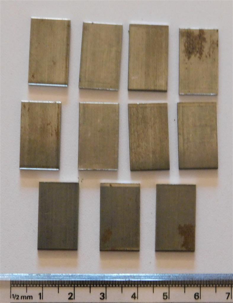 Bag of 11 steel mounting plates 21mm x 13mm x 1.5mm. Item number 1002.