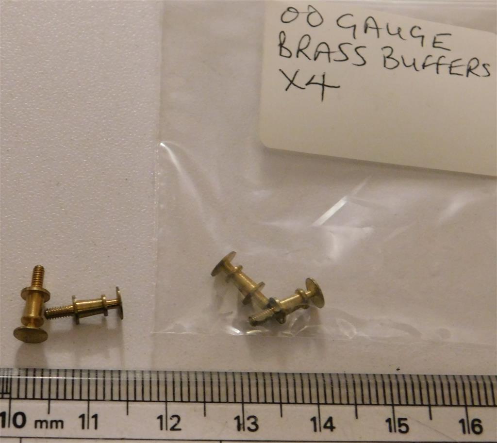 Unused set of 4 brass buffers. Item number 1032.