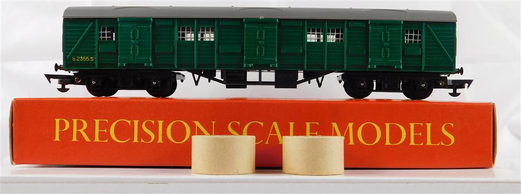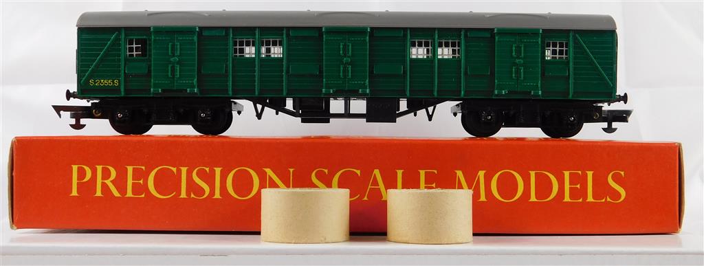 Tri-ang R226 SR Utility Van in green livery with Mk II couplings, running number S2355S. In excellent unrun condition with original box and packing rings.