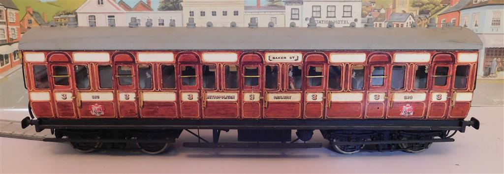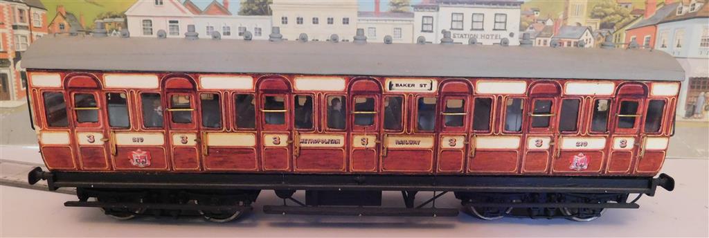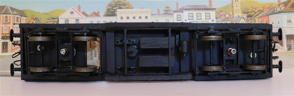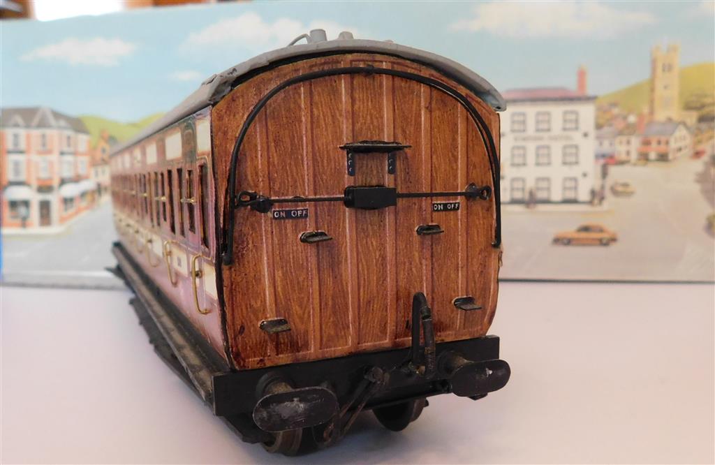 Built to a very good standard by J Dinnage around 1998/9 and very nicely detailed. The coach body is built in wood with litho paper sides/ends and drop link couplings at both ends. All buffers are intact and bogies are fitted with course scale wheels. Item number: 1452. Price £75 Please click on a photo to zoom in - opens in new tab/window