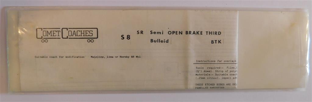 A pair of etched sides for modifying Mainline, Lima or Hornby BR MK1 coaches in original packet with instructions.